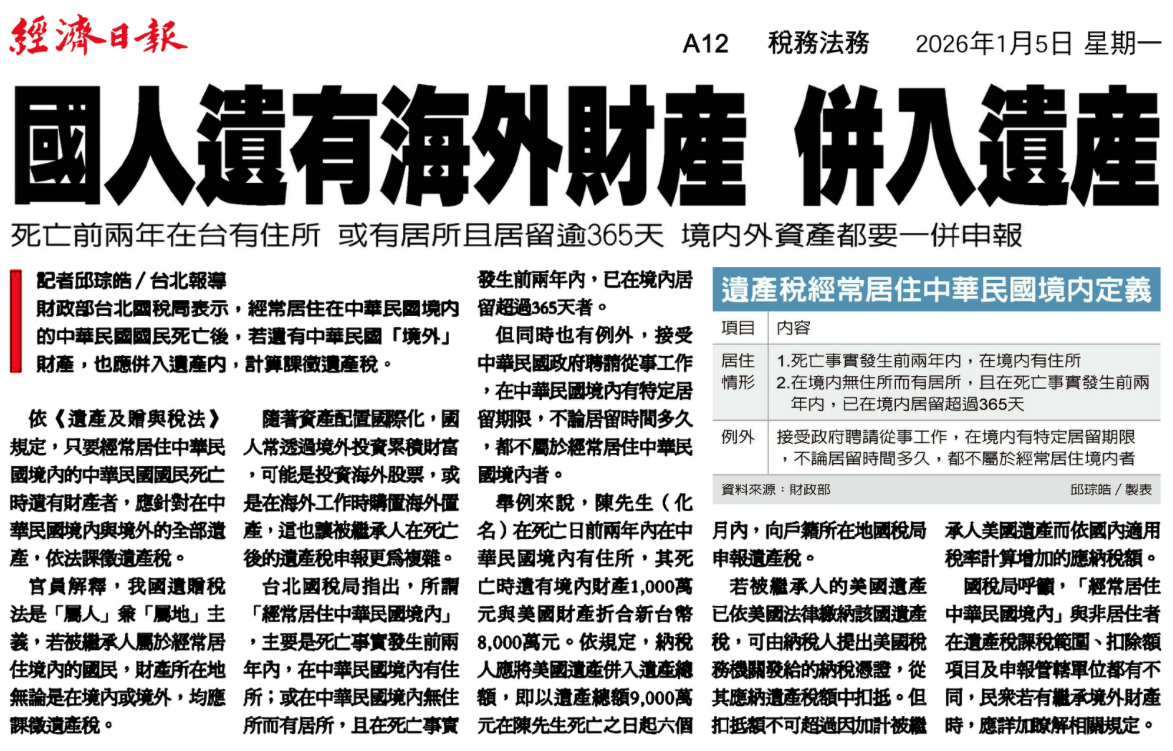 剪報導讀|遺產稅 × 海外資產 × 經常居住認定
